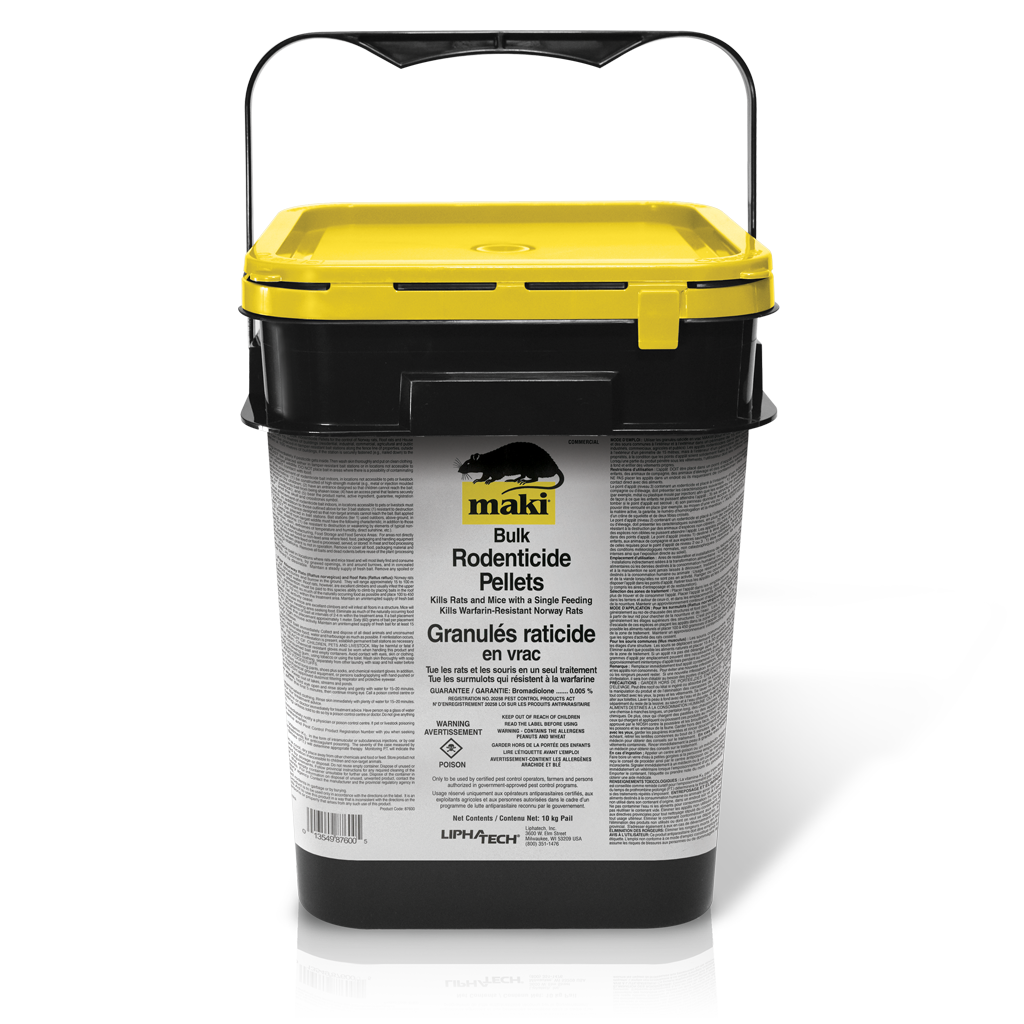 Maki® is a single-feed, second-generation anticoagulant rodenticide. It contains the active ingredient bromadiolone, which is labeled for both indoor and outdoor use. Maki offers high palatability with maximum label uses.